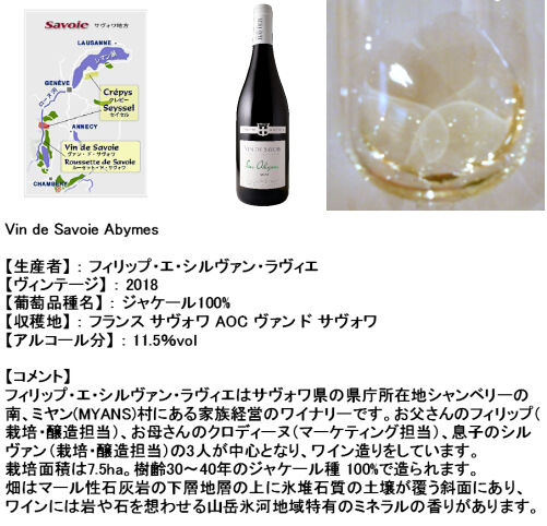 土地独特の風味や味わいである“テロワール”を活かしたワインが多く生産されているサヴォワは、すぐ近くに位置しているジュラ地方とセットで語られることも多く、他の地方に比べ目立たない存在ですが、アルプス山麓の畑が育む特殊なワイン産地で、「山のワイン」と呼ばれる魅力あるワインなど、生産者たちの土地への愛情を感じるワインも少なくありません。